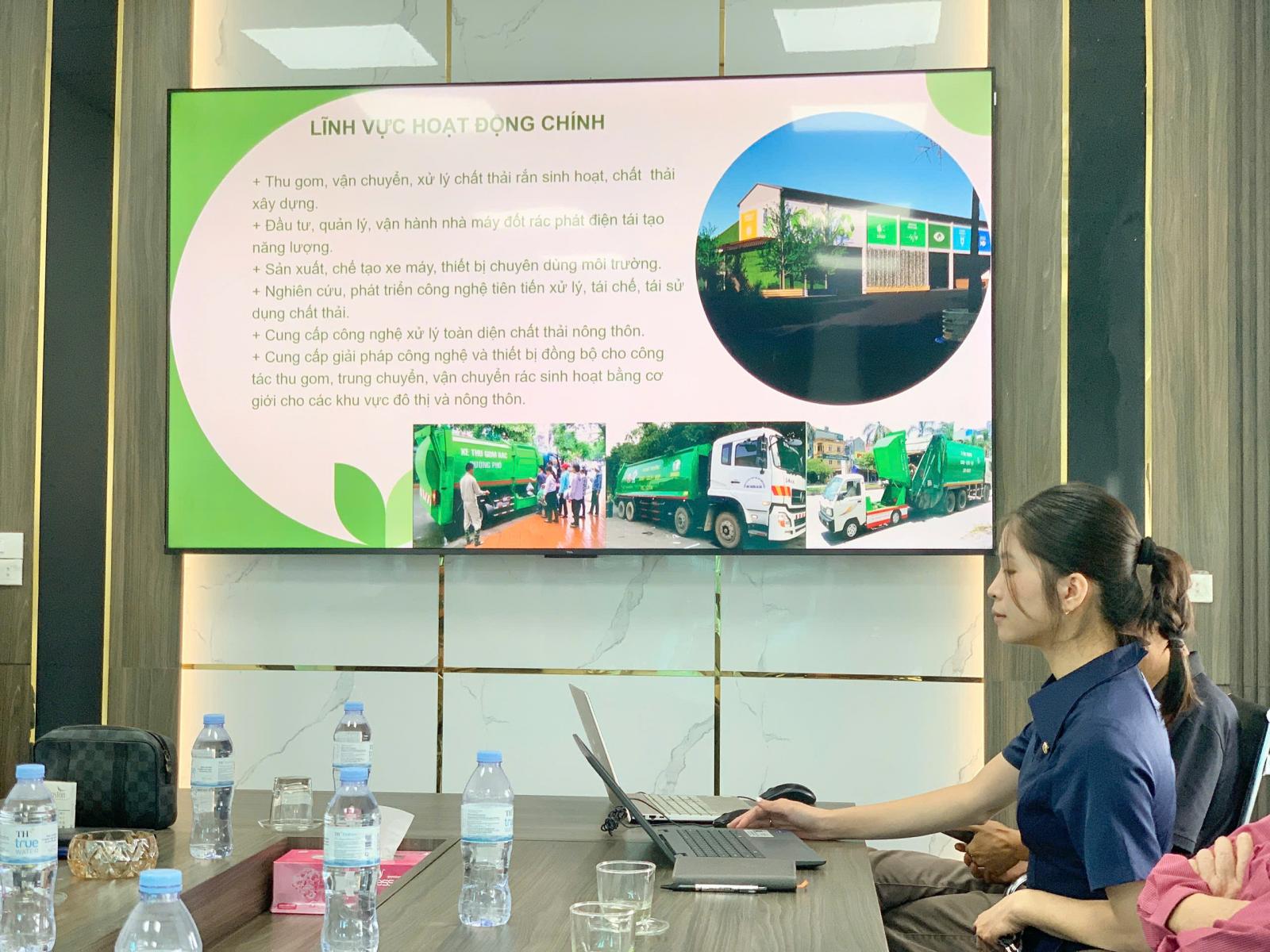 Tham dự buổi làm việc có đại diện lãnh đạo, cán bộ kỹ thuật của hai đơn vị. Nội dung buổi gặp gỡ tập trung vào việc giới thiệu, thảo luận các giải pháp công nghệ trung chuyển và xử lý rác thải hữu cơ - một trong những vấn đề trọng tâm trong công tác quản lý và bảo vệ môi trường đô thị hiện nay.